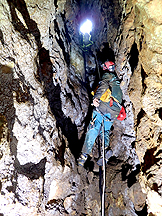 En una nueva Campaña desarrollada durante la tercera semana de octubre, se ha continuado con la exploración de esta notable cavidad, consiguiendo escalar la cascada alcanzada el pasado año (+8 m) y lo que es más importante, descubriendo tras ella cerca de 3 km de nuevos conductos, que finalmente han acabado en un nuevo sifón (Sifón III).