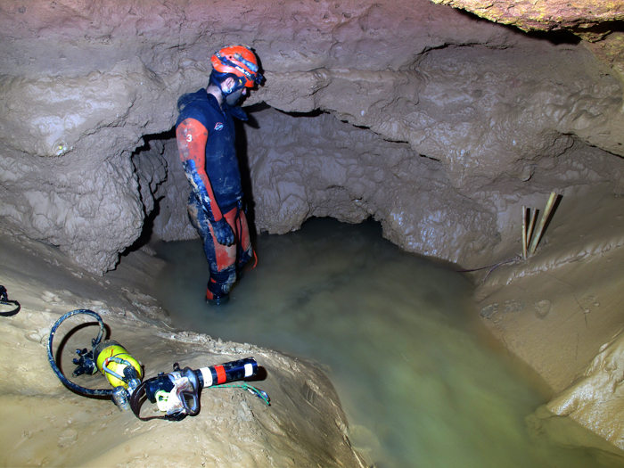 A primeros del pasado mes de mayo espeleobuceadores madrileños han descubierto una interesante cavidad de la que se han explorado 60 m de s